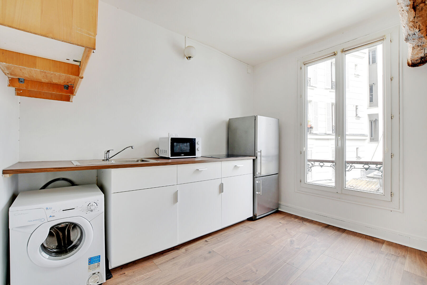 75010 PARIS. Coup de Coeur. LOUIS BLANC. Rue du Faubourg Saint Martin. Dans un Bel Immeuble sur cour Fleurie. Au 2ème et dernier étage. Très Beau Studio de 27m2 en Très bon état. Belle pièces à vivre avec Cuisine Ouverte. Un coin nuit. Une Salle de bain avec WC. Belle Hauteur Sous Plafond. Poutre Apparente. Aucune perte de place. Une Cave. Idéal 1er Achat ou investissement Locatif. A visiter sans Tarder ! Cyriaque Delachaise (EI) Agent Commercial - Numéro RSAC : - .