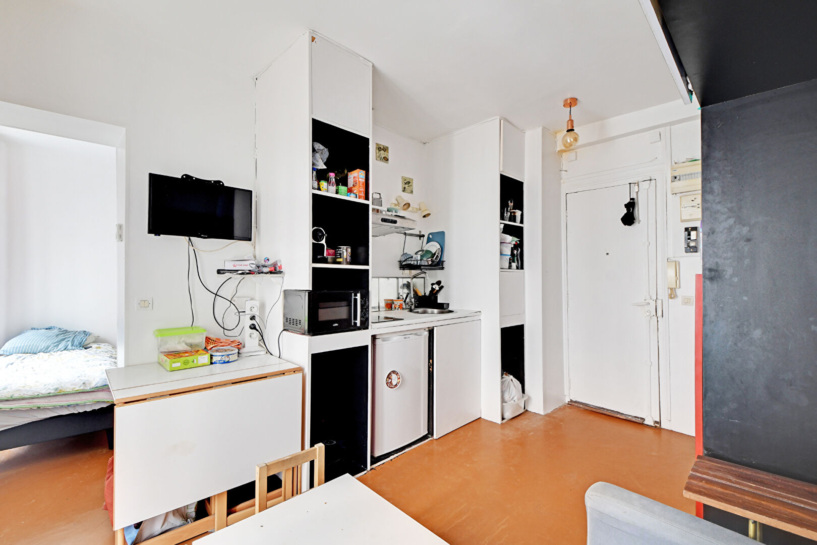 75018 PARIS. ABBESSES. Rue Véron. Dans un Bel Immeuble Ancien en Angle. En étage sur Rue. 2 Pièces de 21m2 Loi carrez en Bon État. Vendu loué (750 euros CC/mois) en bail meublé (fin de bail avril 2027). Congé déjà donné au locataire. Séjour avec cuisine Us, Une Chambre. Salle d'eau Avec WC. Bon état général. Idéal 1er Achat ou Investissement locatif. Quartier Recherché.