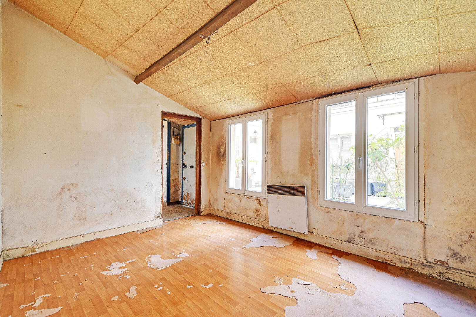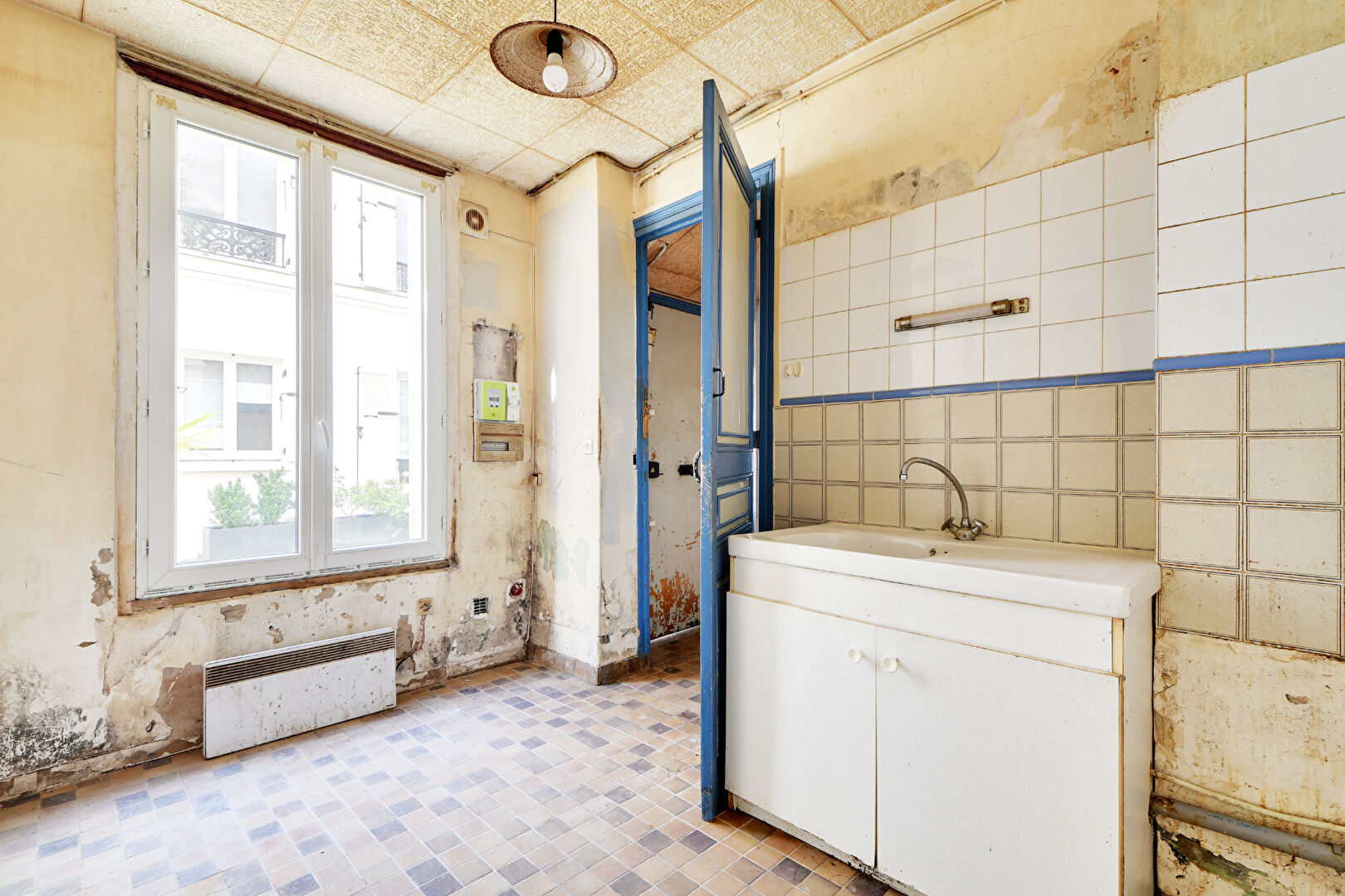 92300 Levallois. Louise Michel. Emplacement de 1er Ordre. à 100 m du Métro. Dans un Très Bel Immeuble Ancien très bien entretenu. 2 Pièces à Rénover de 34m2 au rez-de-chaussée sur une Belle cour. Sans Aucune Perte de Place. Belle Pièce à Vivre. Possibilité de Cuisine Ouverte. Une Chambre. Salle d'eau avec WC. Double Vitrage. Travaux de rénovation à Prévoir. Idéal 1er Achat ou Investissement locatif.