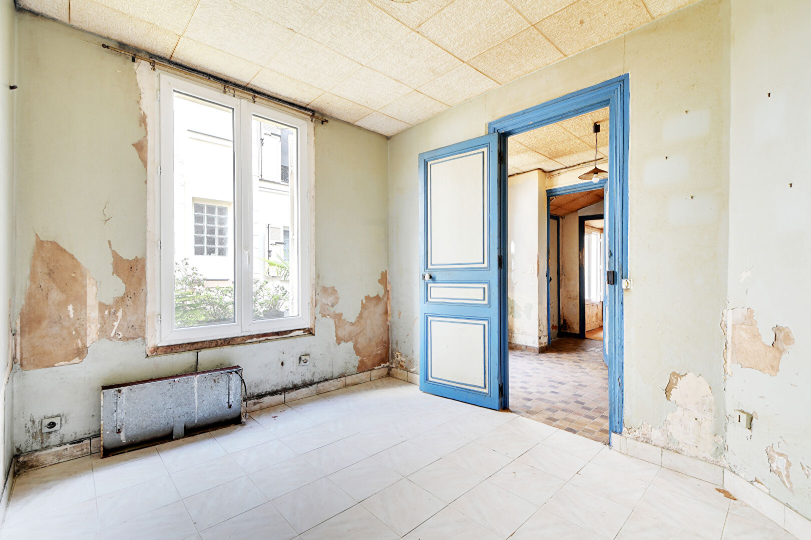 92300 Levallois. Louise Michel. Emplacement de 1er Ordre. à 100 m du Métro. Dans un Très Bel Immeuble Ancien très bien entretenu. 2 Pièces à Rénover de 34m2 au rez-de-chaussée sur une Belle cour. Sans Aucune Perte de Place. Belle Pièce à Vivre. Possibilité de Cuisine Ouverte. Une Chambre. Salle d'eau avec WC. Double Vitrage. Travaux de rénovation à Prévoir. Idéal 1er Achat ou Investissement locatif.