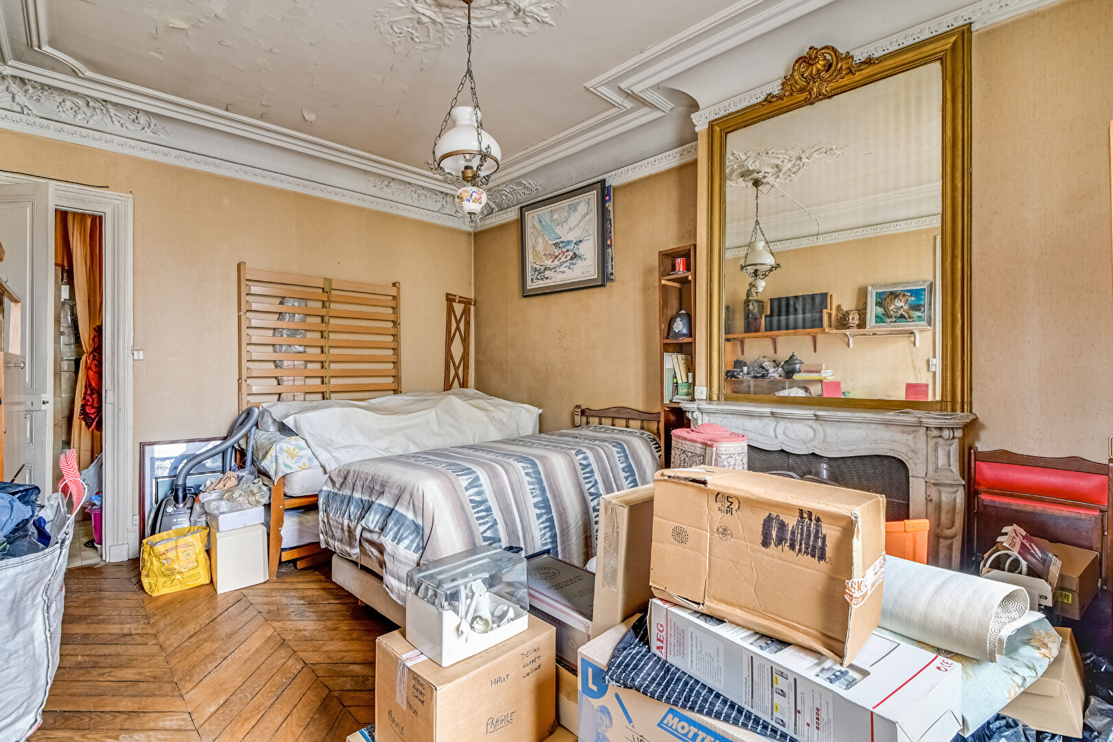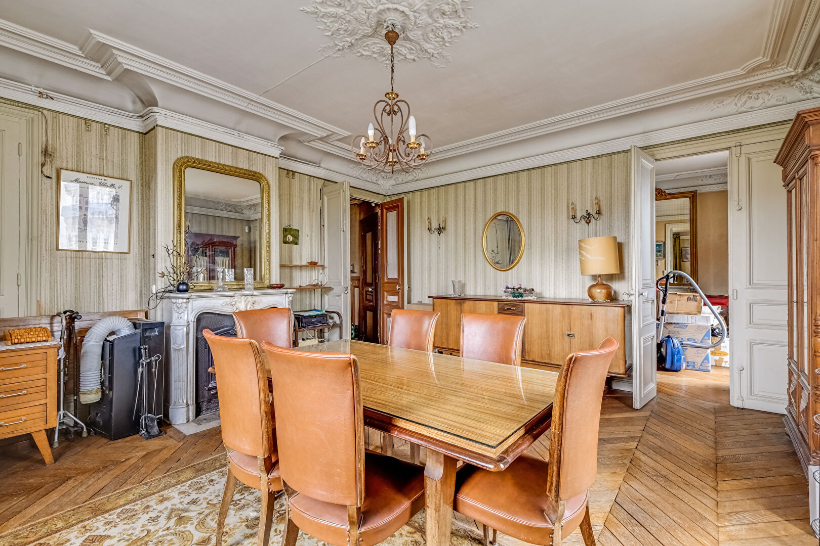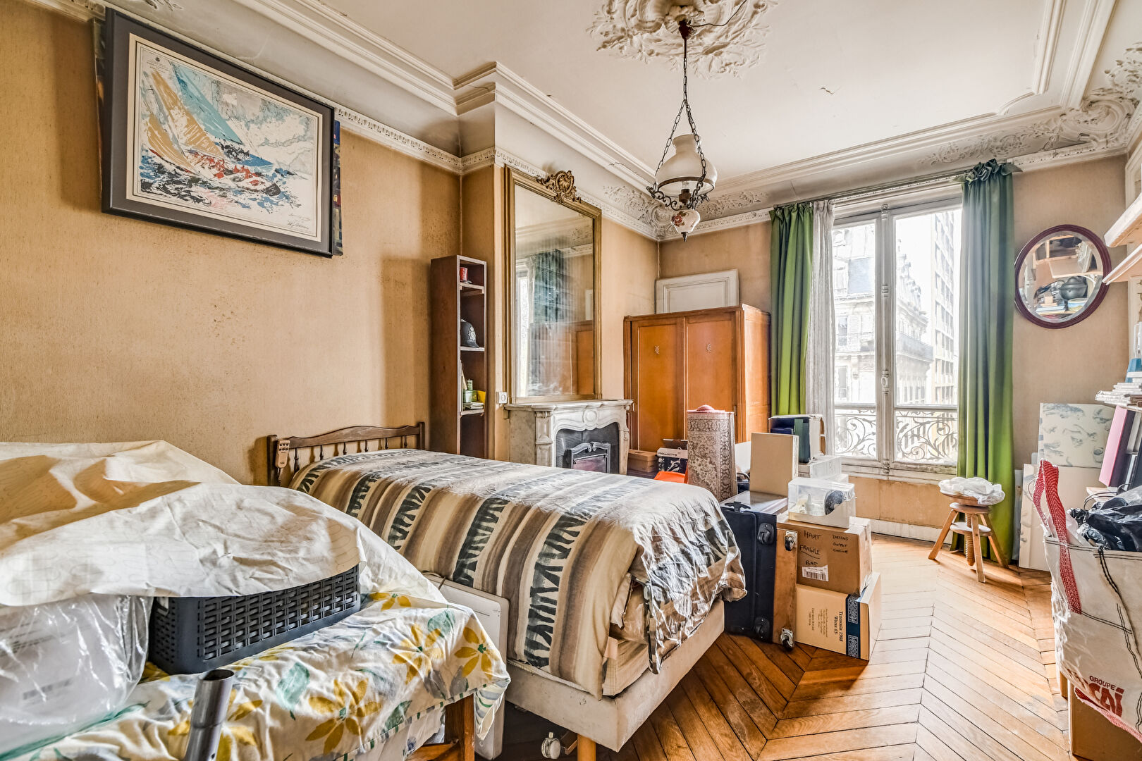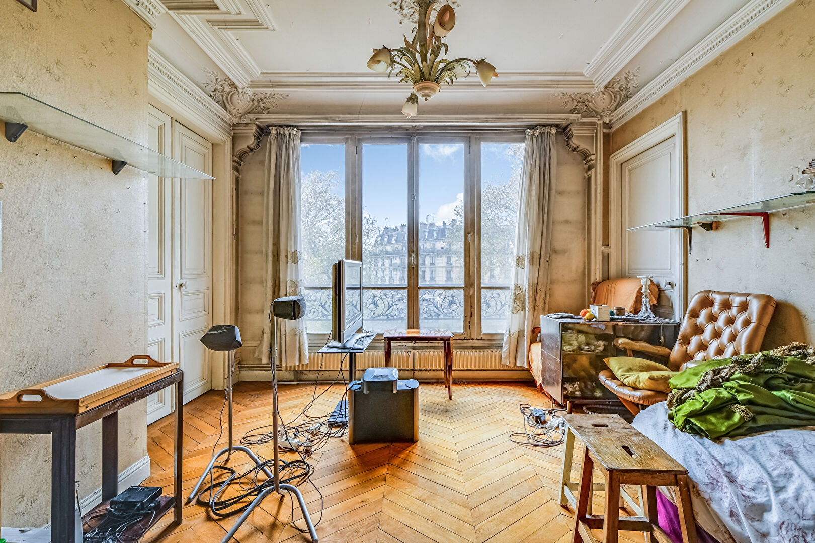 75018 PARIS. Place de La Chapelle. Rue Marx Dormoy. A la sortie du Métro. Dans un Magnifique Immeuble Ancien Pierre de Taille. En étage élevé avec Vue Dégagée .Magnifique 4 Pièces de 100m2 à Rénover. Tout le Charme de l'Ancien (Parquet point d'Hongrie, Moulures, Cheminées). Sans Vis à Vis. Vue dégagée Plein Sud. Belle Pièce à Vivre. 3 Chambres (dont 1 avec un petit bureau attenant + Dressing). Cuisine Indépendante. Salle de bain. WC séparé. Rangements. Grande Cave. Commerces et Transports au Pied de l'Immeuble.