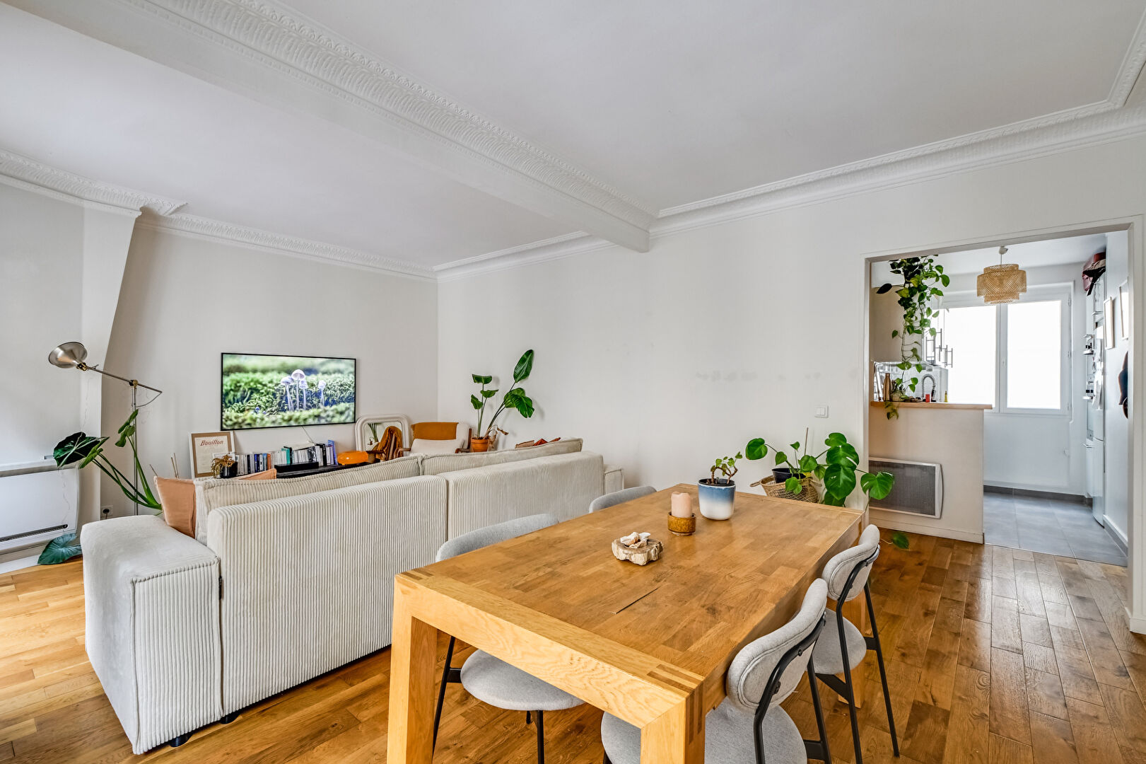 75018 Paris M° Guy Moquet / Lamarck. Rue Joseph de Maistre, proche place Jacques Froment. Dans un très bel immeuble ancien, en étage avec ascenseur, magnifique 2 pièces de 53,58m2 Carrez, traversant, avec plan en étoile, et très belles prestations comprenant : double séjour de 25m2 sur rue, cuisine aménagée et équipée ouverte sur entrée, chambre avec grand rangements sur cour, SDE, WC séparé. 1 cave. Double vitrage. Calme et Lumineux. Commerces et transports à proximité.Copropriété de 28 lots.Charges annuelles : 2400 euros.