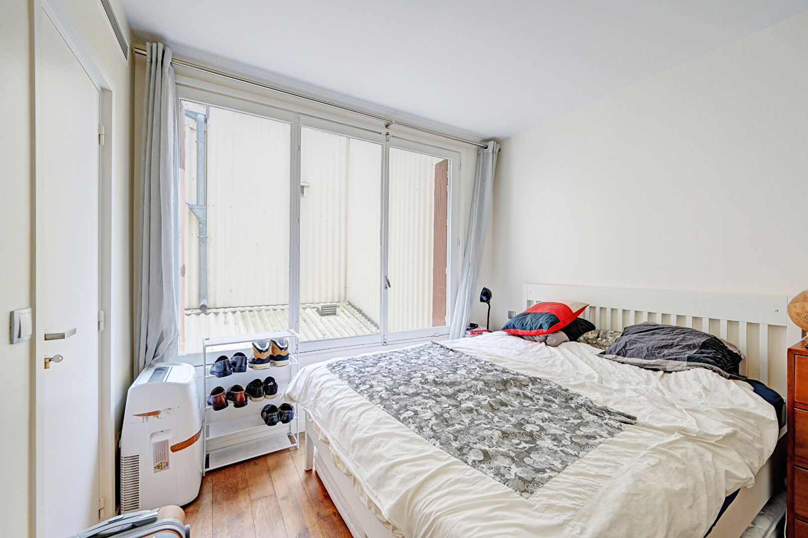 75014 PARIS. M° Montparnasse-Bienvenue. Rue du Départ. Dans une petite copropriété ancienne entièrement rénovée en 2001, en étage sans ascenseur. 4 pièces de 102,22m2 Carrez comprenant : entrée, grand séjour de 48m2 avec cuisine ouverte aménagée et équipée, 3 chambres dont 1 avec Salle d'eau attenante et 1 avec Salle de bain attenante, 1 WC séparé à l'entrée. Climatisation réversible avec pompe à chaleur. Double vitrage. Ensoleillé avec vue dégagée, sans vis à vis et exposition Ouest. 1 grande cave bétonnée avec porte blindée.